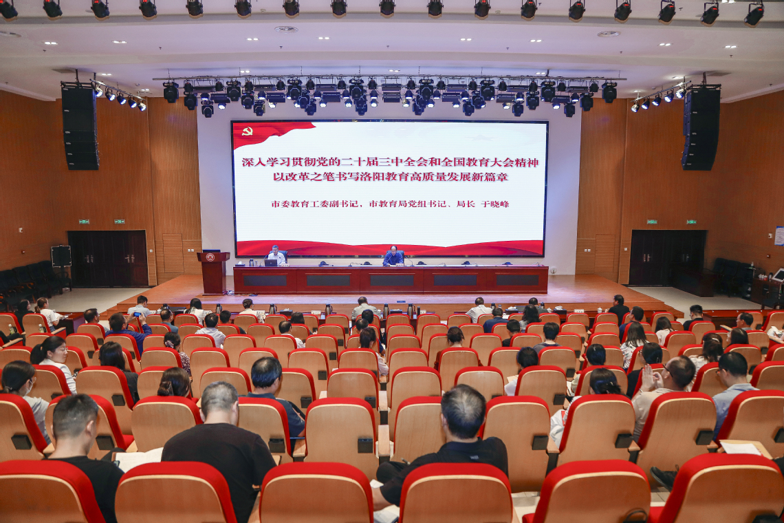于晓峰以《深入学习贯彻党的二十届三中全会和全国教育大会精神以改革之笔书写洛阳教育高质量发展新篇章》为题,详细阐释了党的二十届三中全会的重大时代意义和深远历史影响,以及全面深化改革的主题、重大原则、重大举措、根本保证和我们党将改革开放进行到底的坚定决心,并对全国和全省教育大会精神进行了深入解读。