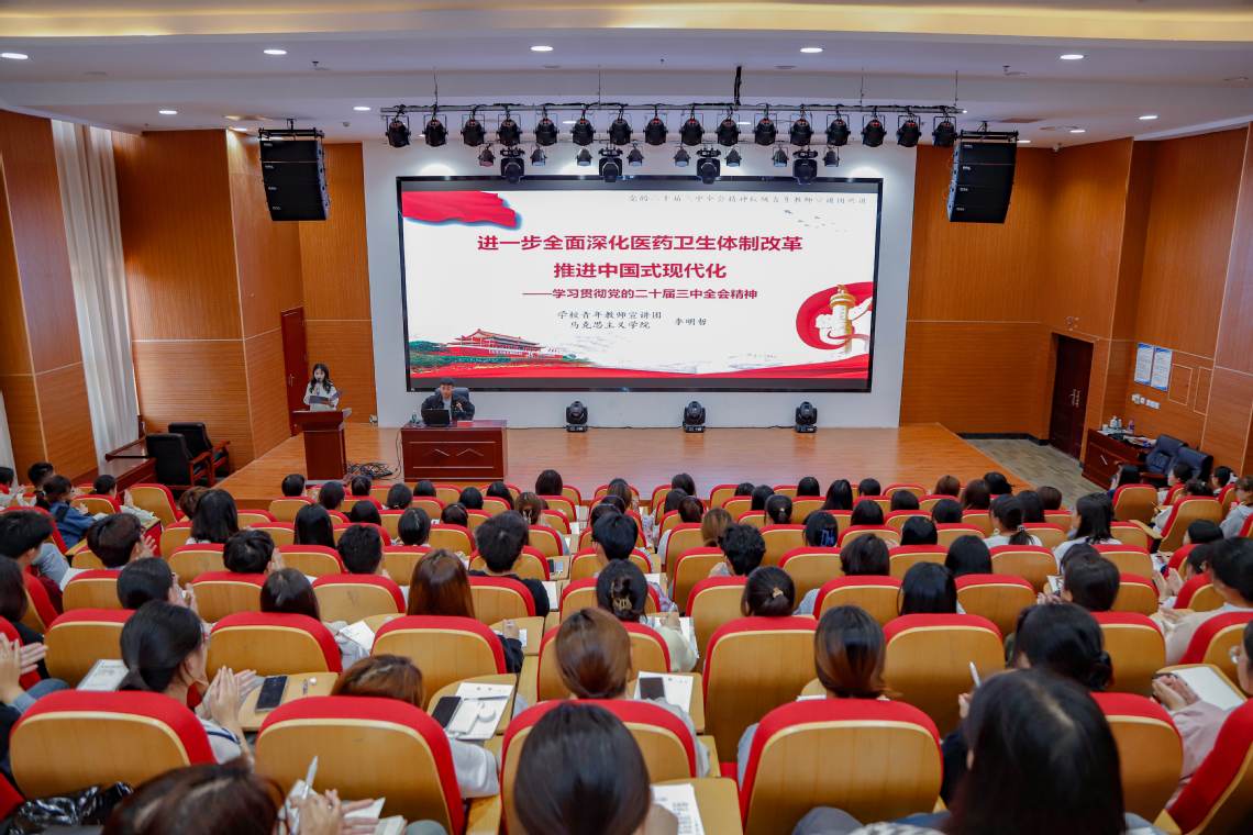 李明哲老师以《进一步全面深化医药卫生体制改革推进中国式现代化——学习贯彻党的二十届三中全会精神》为题,从“什么是改革”为切入点,分别从深刻把握党的二十届三中全会的主题、新时代以来全面深化改革的成功实践和伟大成就、进一步全面深化改革、推进中国式现代化的重大意义和总体要求、进一步全面深化改革作出的系统部署等方面对党的二十届三中全会精神进行了深入解读。